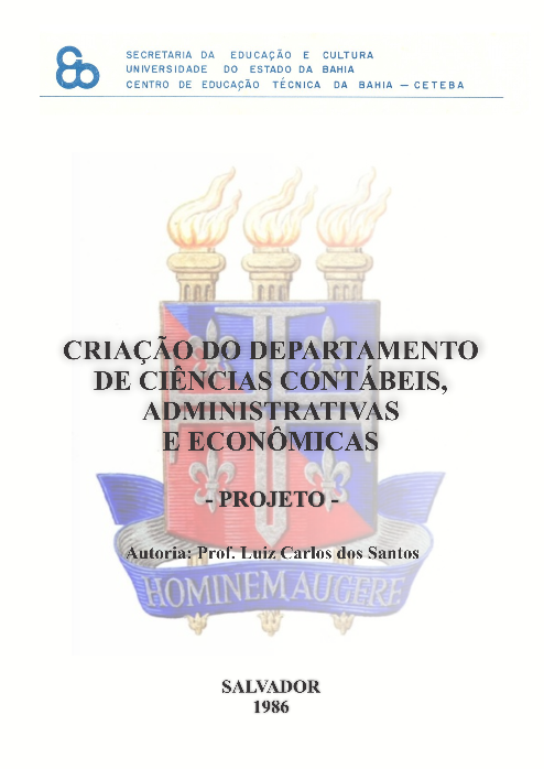 Objetivo: Criar o Departamento de Ciências Contábeis, Administrativas e Econômicas, a partir do desmembramento do Departamento de Humanas do Centro de Educação Técnica da Bahia – CETEBA, visando maior eficácia, eficiência e efetividade das ações relativas ao Curso de Bacharelado em Ciências Contábeis, implantado em 1986, com reflexos para a melhoria dos serviços aos cursistas.